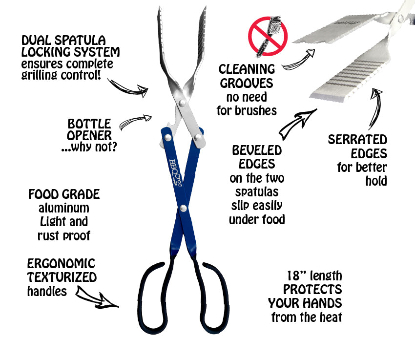 DESIGN – Bottle opener and spatulas with serrated edges for a more secure grab.