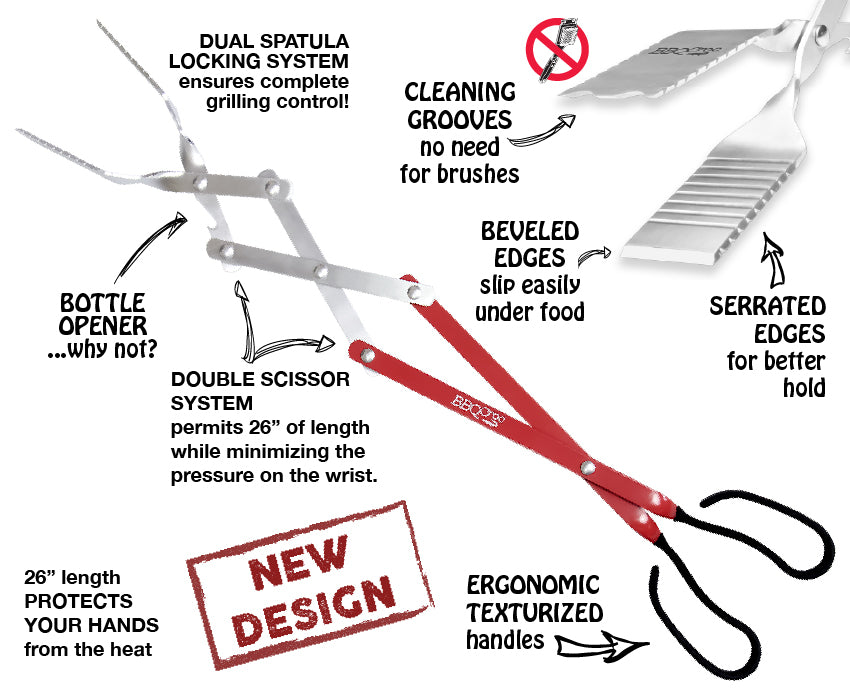 EXTRA FEATURES – Bottle opener, serrated edges on the spatulas for a more secure grab and ergonomic non-slip texturized handles ensure a firm & comfortable grip.