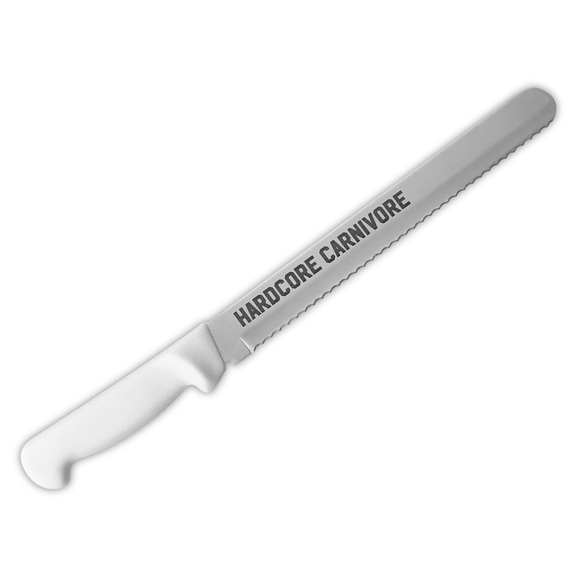 Features the Hardcore Carnivore logo along the blade. This is the exact type of knife used and preferred by most Texas restaurant pitmasters.